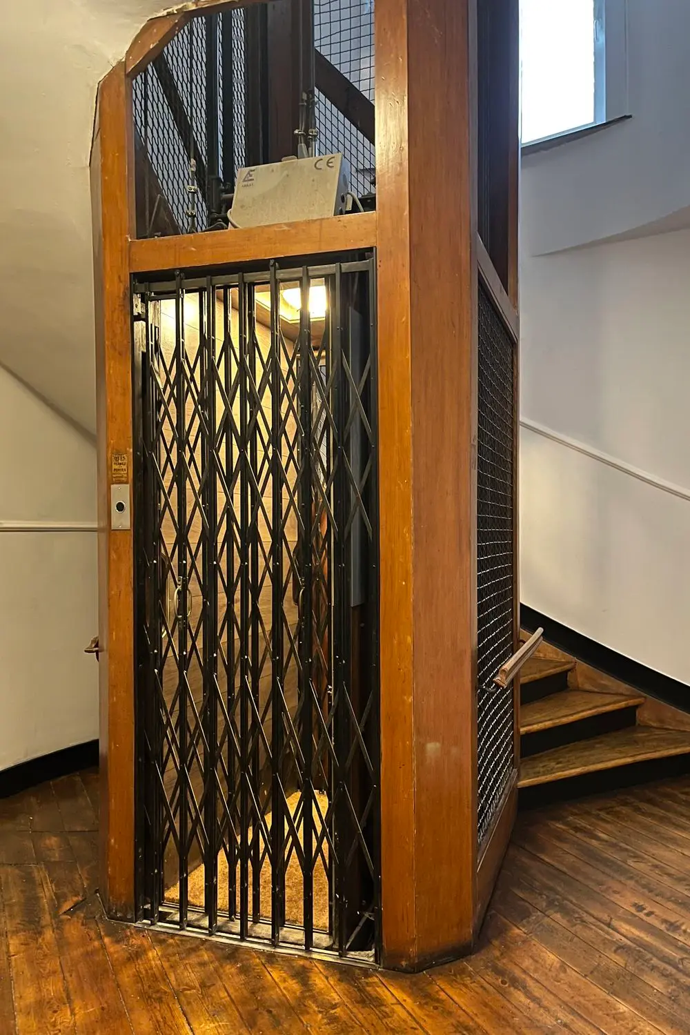 De lift blijft authentiek, maar wordt even veilig als een moderne installatie.